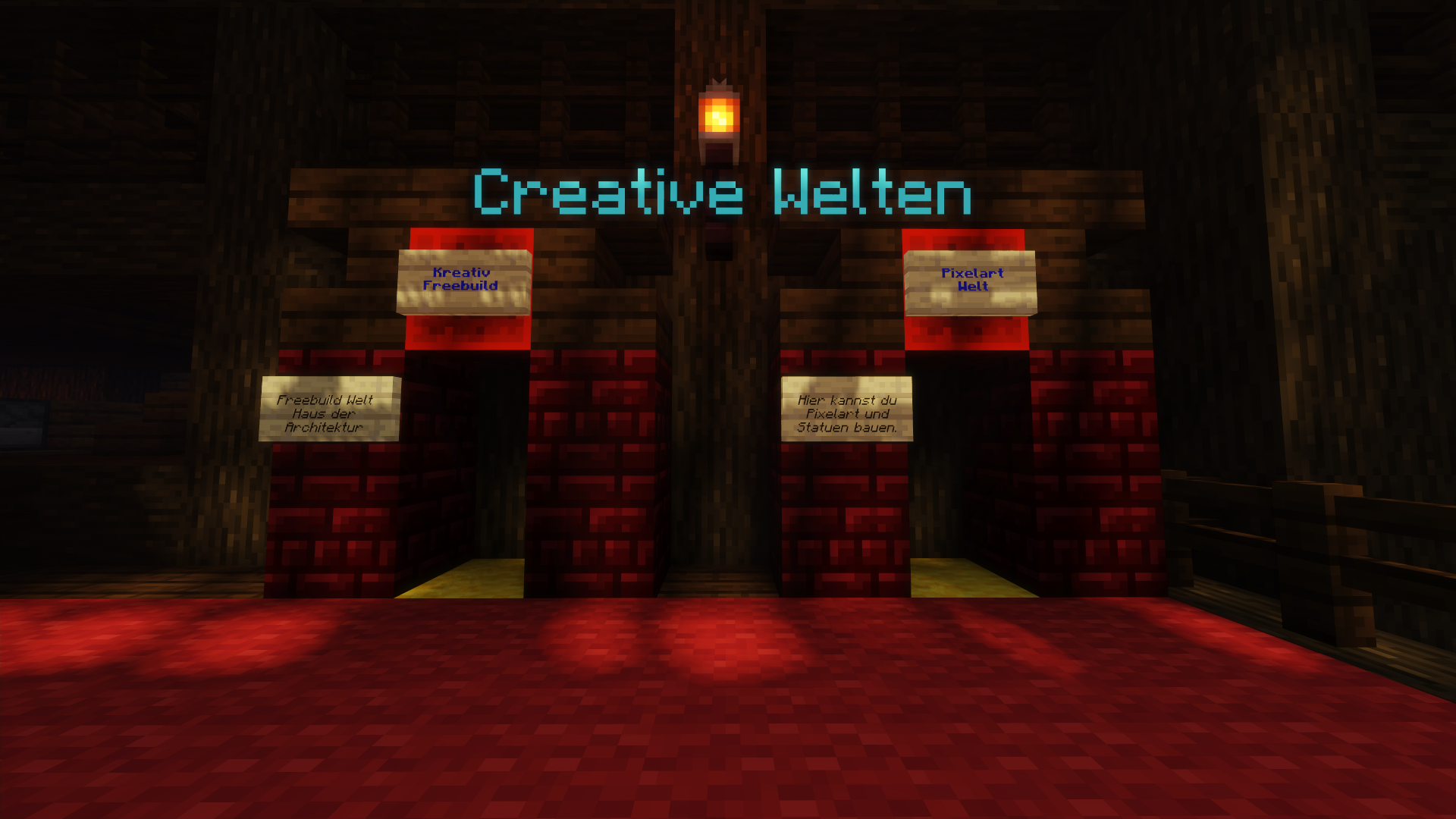 Der Kreativserver bietet zwei verschiedene Welten: Freebuild und Pixelart.